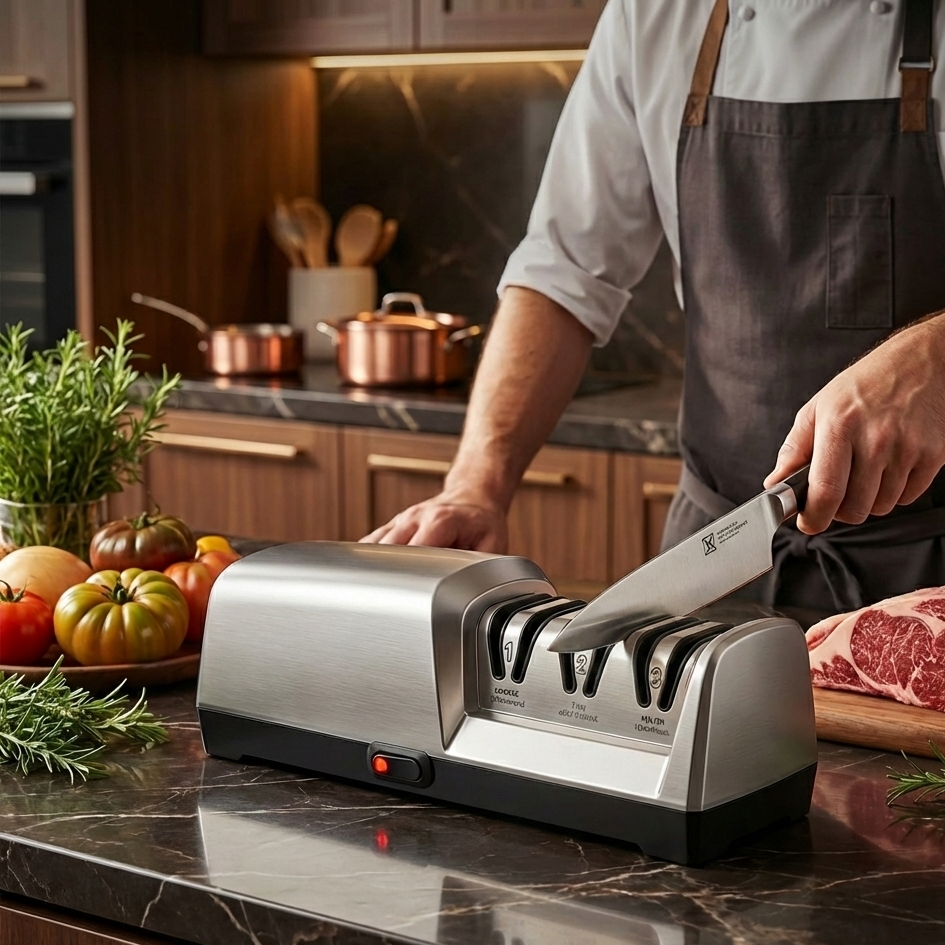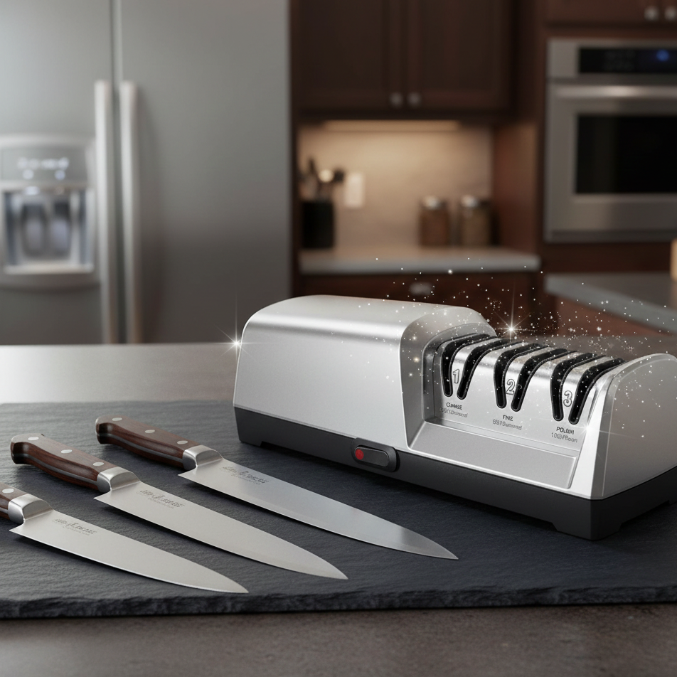 Aiguiseur de Couteaux Électrique – Affûtage en 3 Étapes