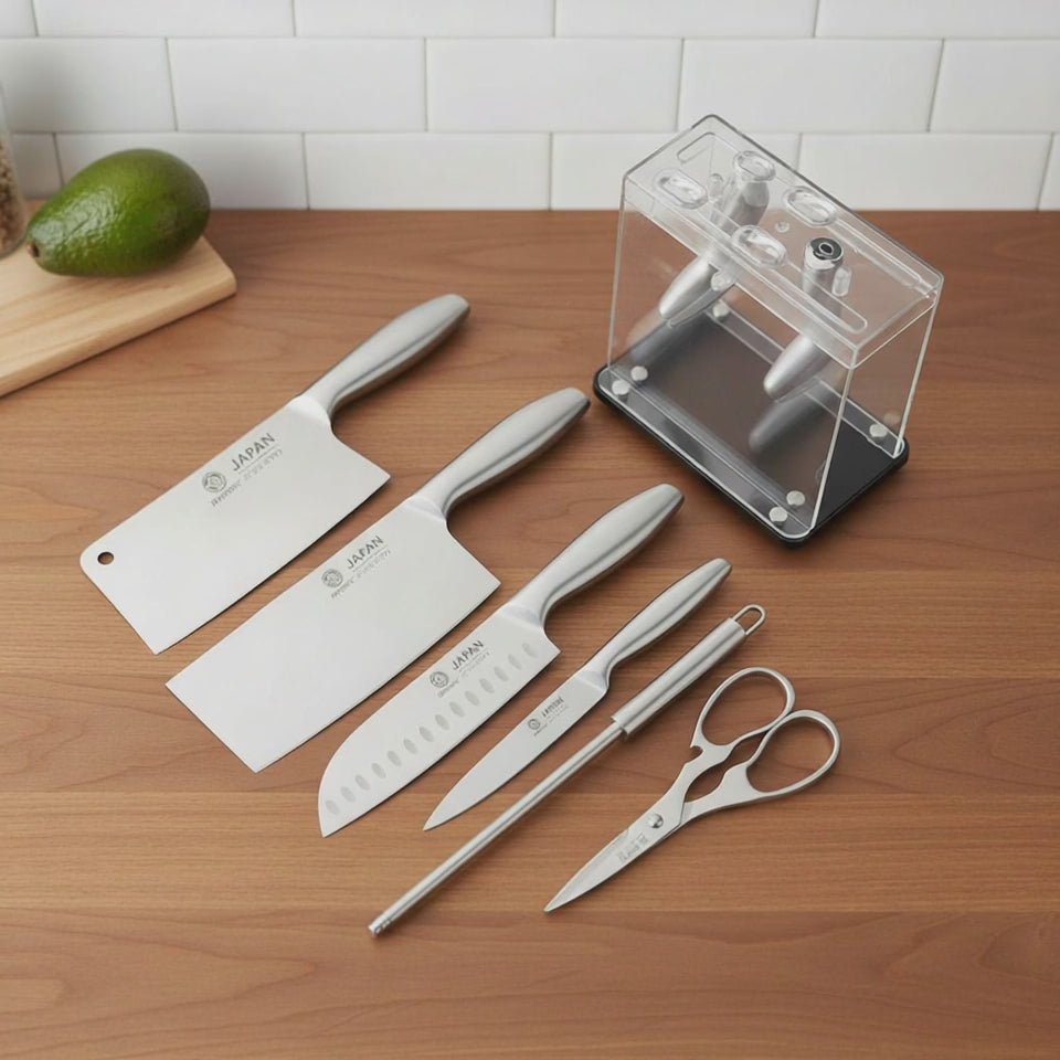 Ce set de 6 couteaux japonais combine performance professionnelle, design élégant et poignées ergonomiques pour une prise en main confortable. Parfait pour des découpes précises et un usage quotidien en cuisine.